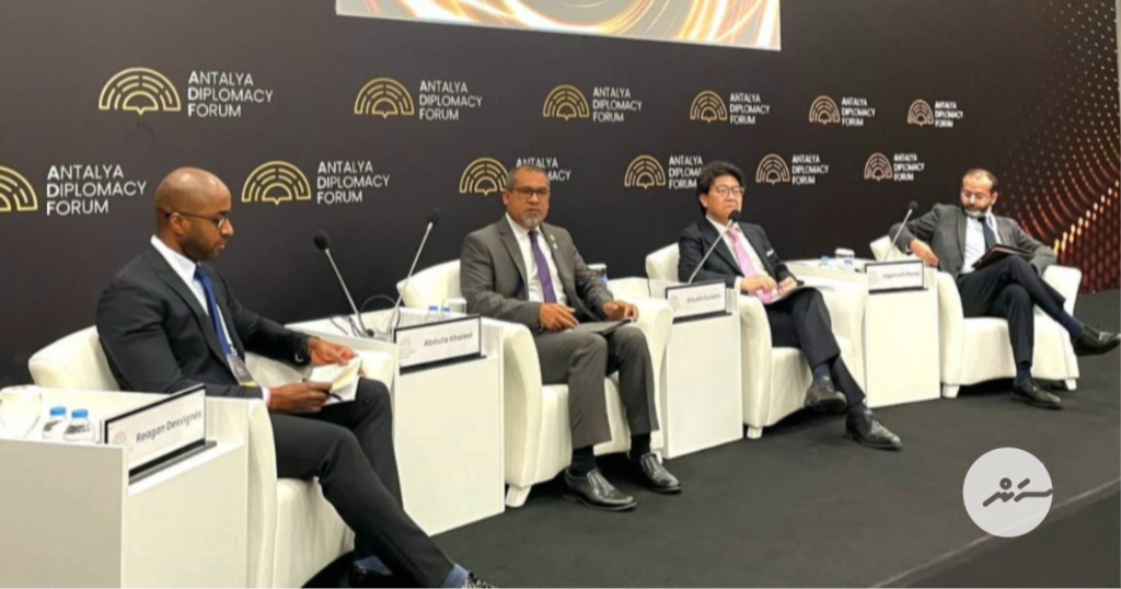 ތުރުކީގެ ޚާރިޖީ ވަޒީރު ހަކާން ފިދާންގެ ދަޢުވަތަކަށް އަންތާލިޔާ ޑިޕްލޮމަސީ ފޯރަމްގެ ހަތަރު ވަނަ އެޑިޝަންގައި ބައިވެރިވެވަޑައިގަތުމަށް ޚާރިޖީ ވަޒީރު، ޑރ. ޢަބްދުالله ޚަލީލް ކުރެއްވި ދަތުރުފުޅުގައި މި ފޯރަމްގެ ތެރެއިން ބޭއްވި މަތީފަންތީގެ ޕެނަލް ޑިސްކަޝަނެއްގައި ބައިވެރިވެވަޑައިގެންފިއެވެ.